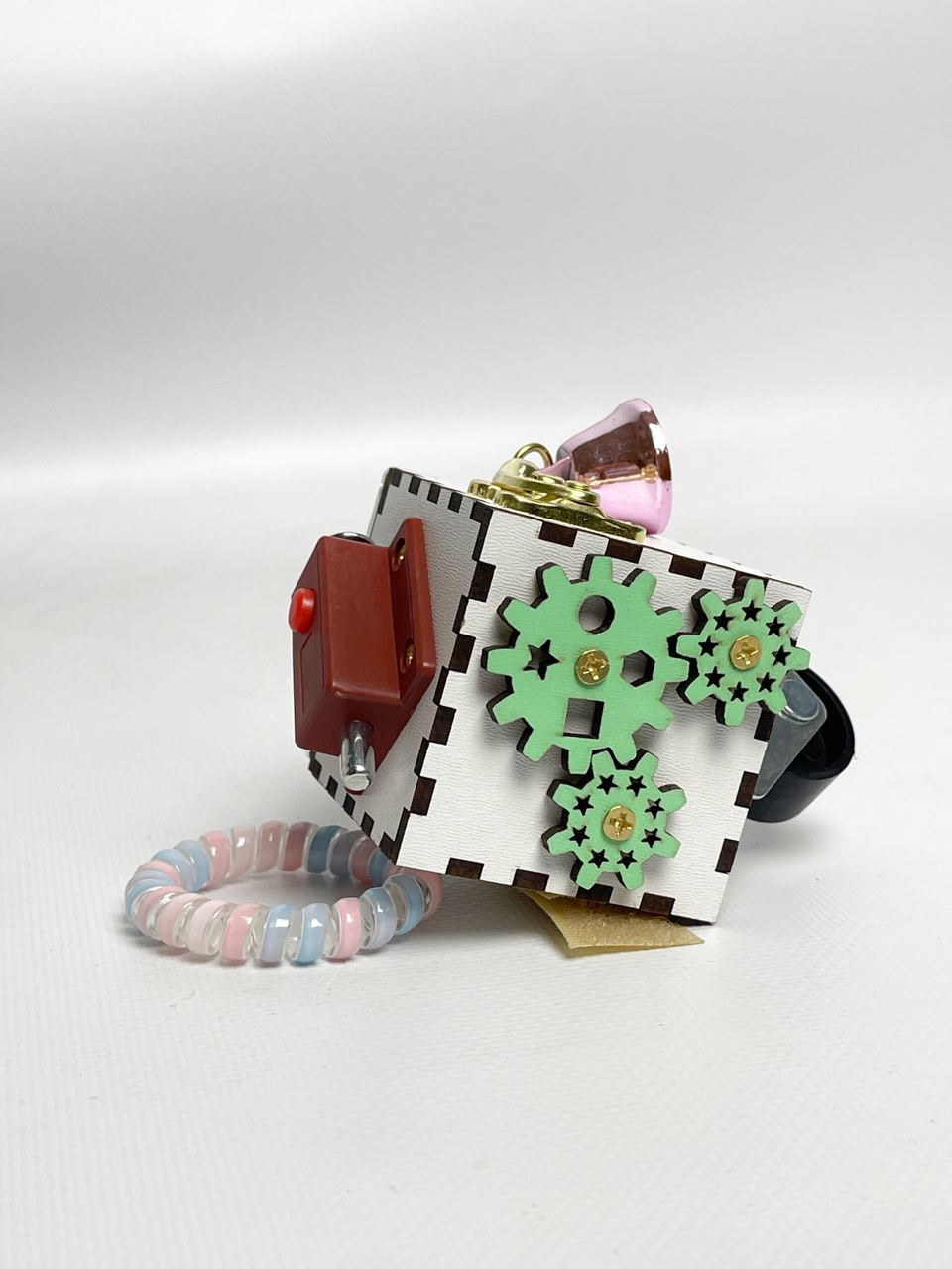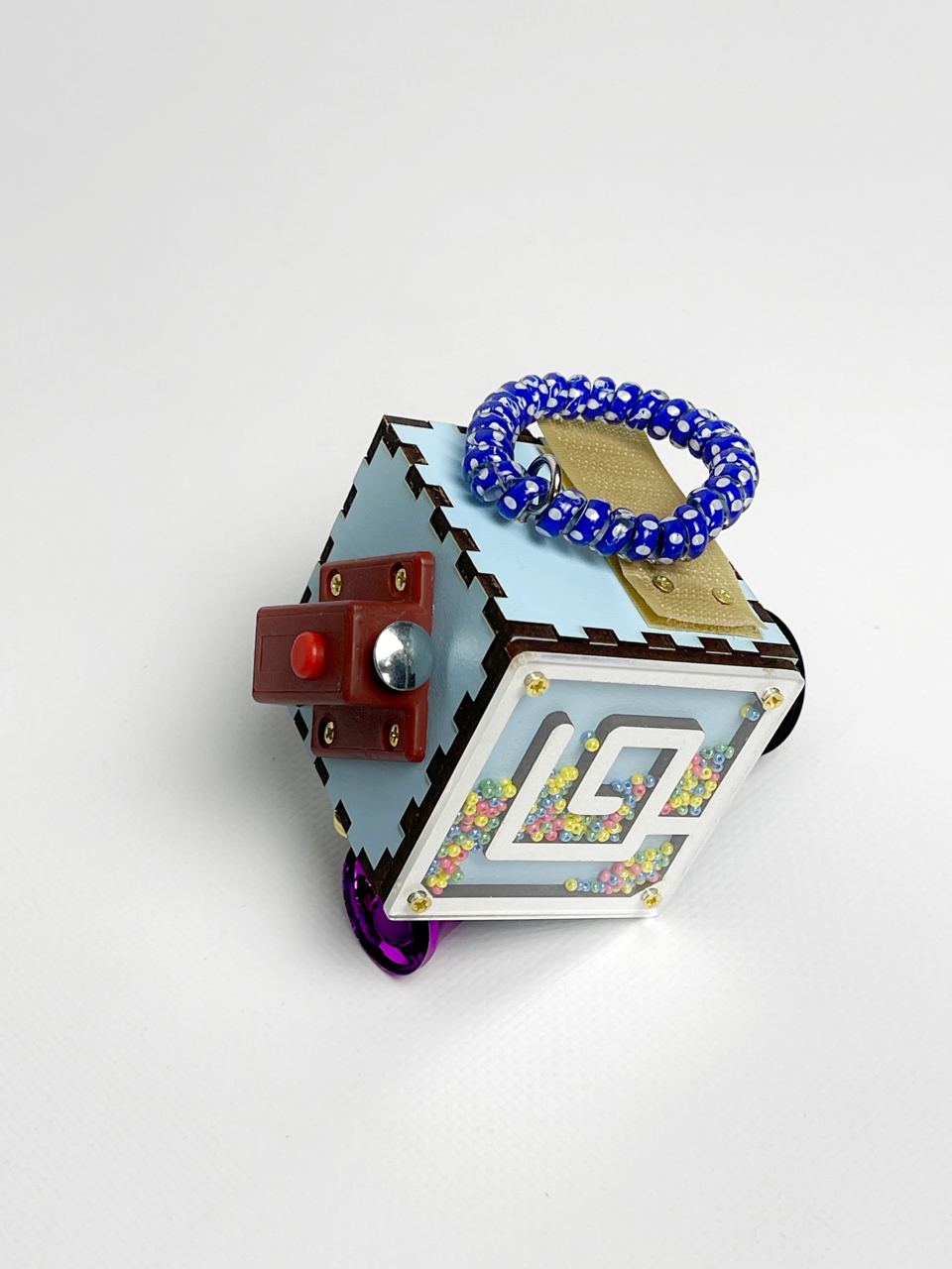 Має 8 зон для взаємодії та розвитку: лабіринт, шестерні, липучка, резинка, шпінгалет, колесо, дзвіночок, замок.