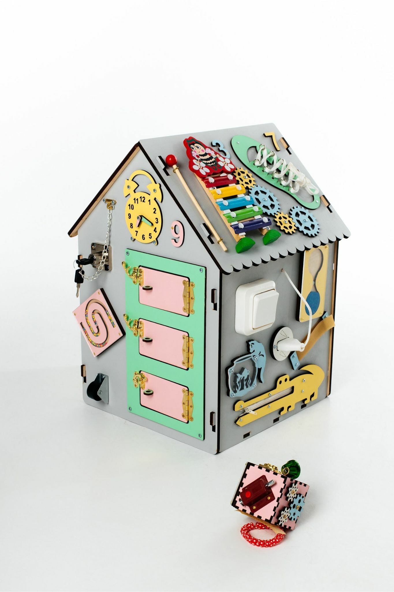 Має 21 зон для взаємодії та розвитку: годинник, лабіринти, шестерні, музичні інструменти, лампочка, вимикачі і багато іншого
