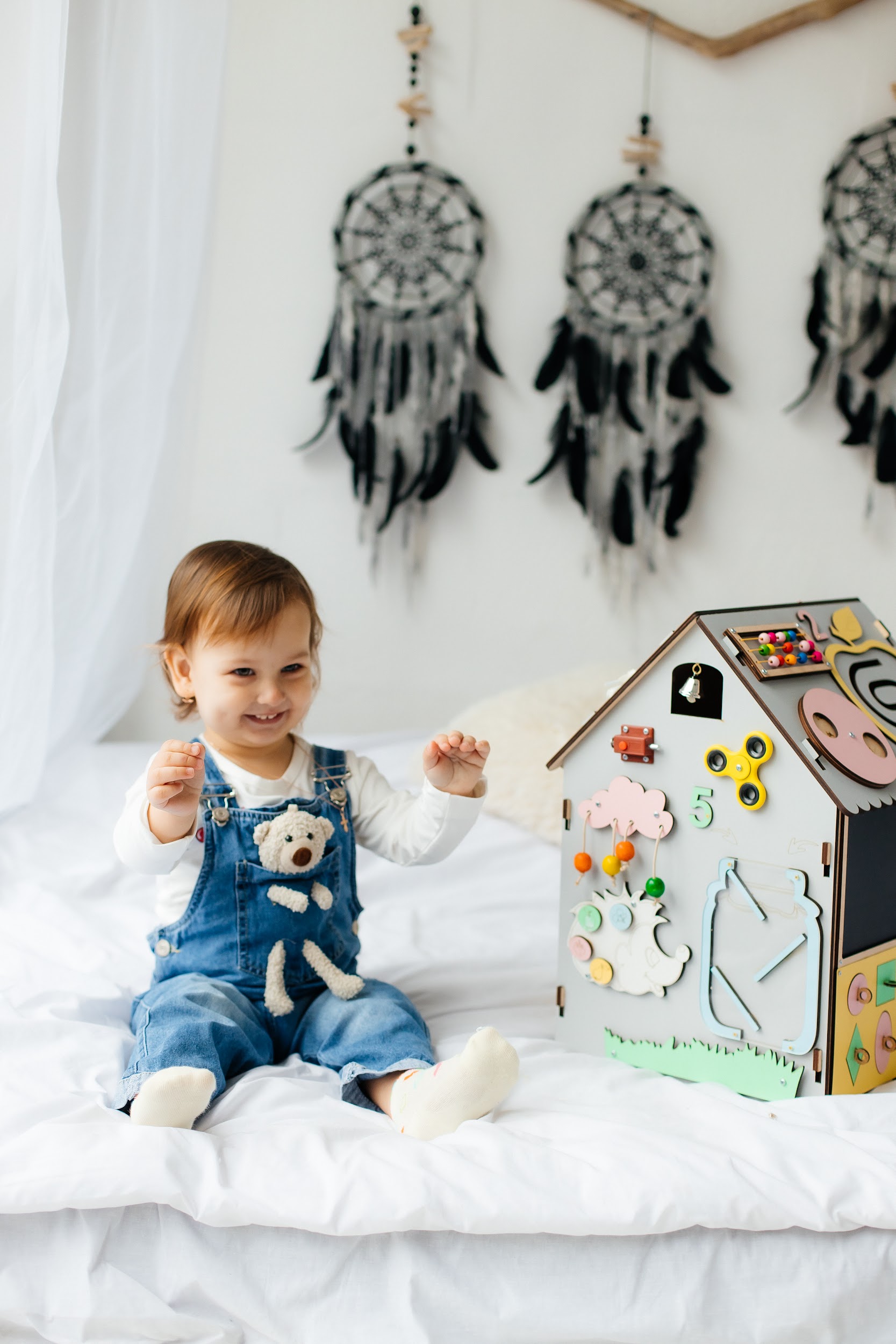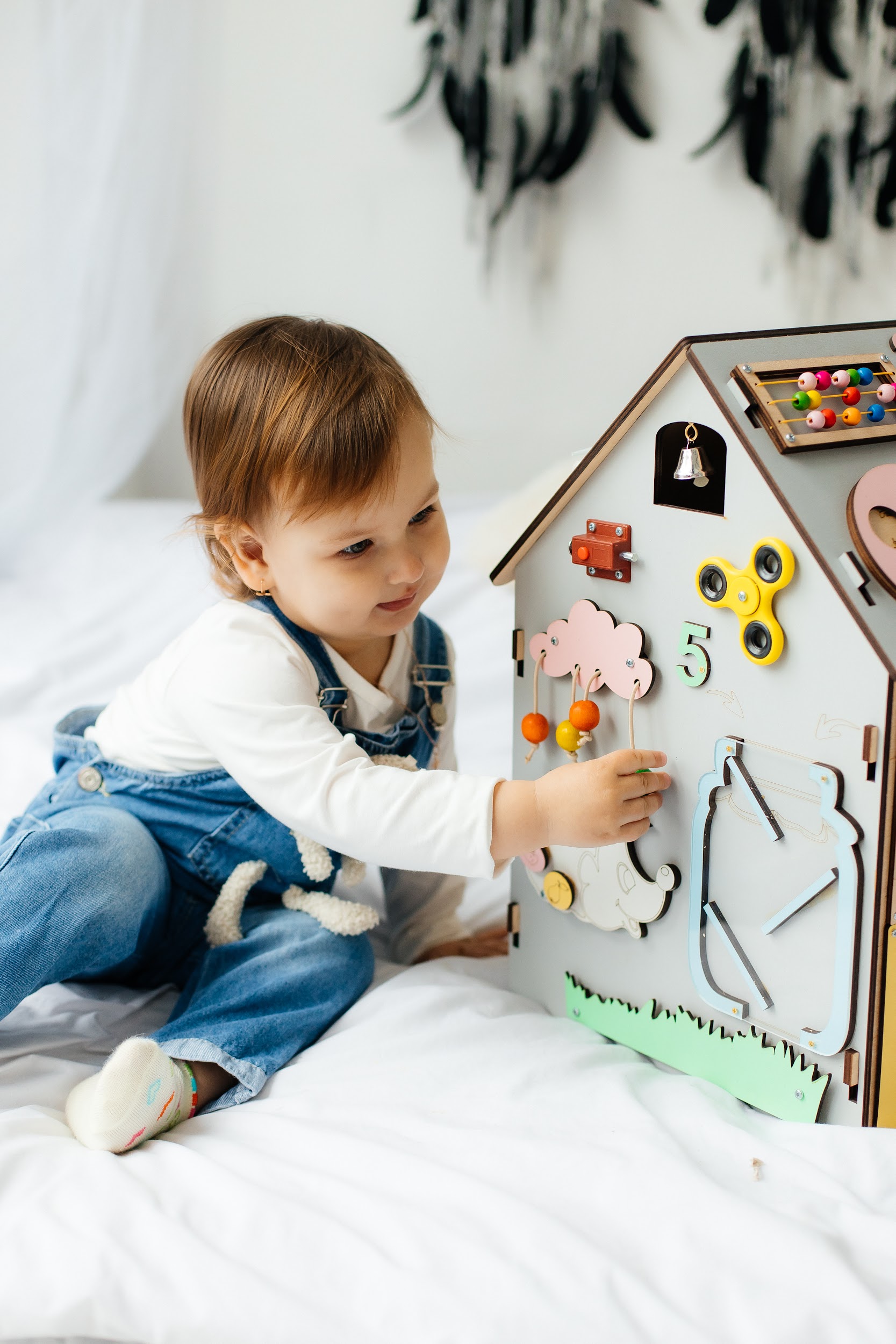 Зручний у використанні, можна перенести в будь-яке потрібне вам місце. З бізібудинком дитина розвивається самостійно.